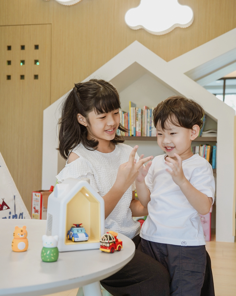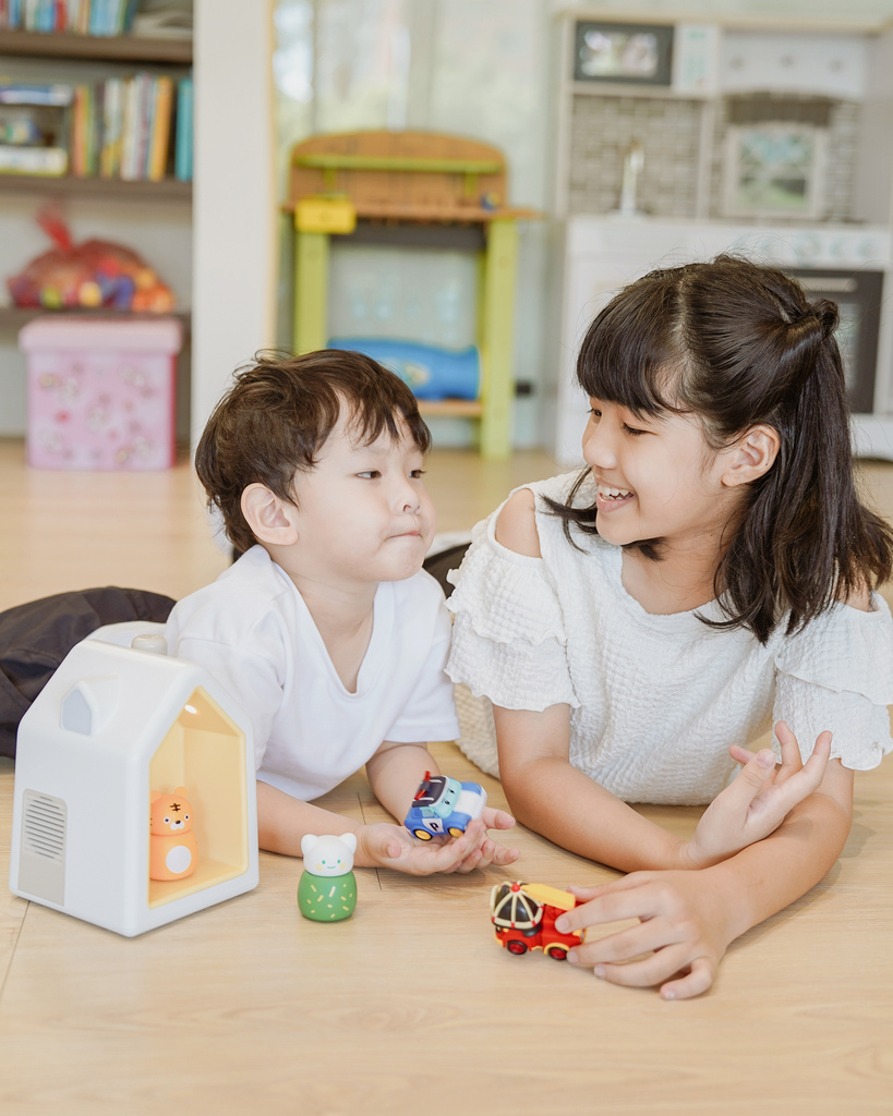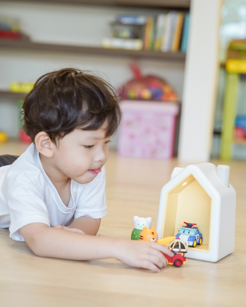 有可愛的arti 角色陪伴,孩子們真的會很有興趣,平常阿汮也把故事屋當作POLI的秘密基地停車場,任務結束回來停在故事屋中。只能說孩子想像力真的無限,kokozi 智慧互動故事屋不只是故事屋、哄睡神器,也是孩子的玩伴!