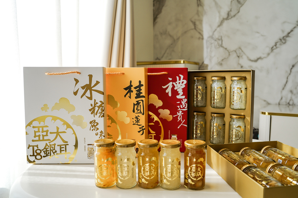 銀耳禮盒推薦!亞大T8銀耳露是秋冬食補的質感甜品好選擇,白木耳一直是大家熟悉的好食材,想吃白木耳就吃台灣自產自銷的亞大T8銀耳露吧!以新鮮銀耳熬煮,吃起來清爽無負擔感,而且吃得到大份量的朵朵銀耳,每一口都讓人大滿足,包裝採用玻璃瓶裝,看得見內容物更安心,常溫可保存,攜帶、送禮都方便,現在還推出各式禮盒包裝,想找養生銀耳禮盒不能錯過亞大T8銀耳露。