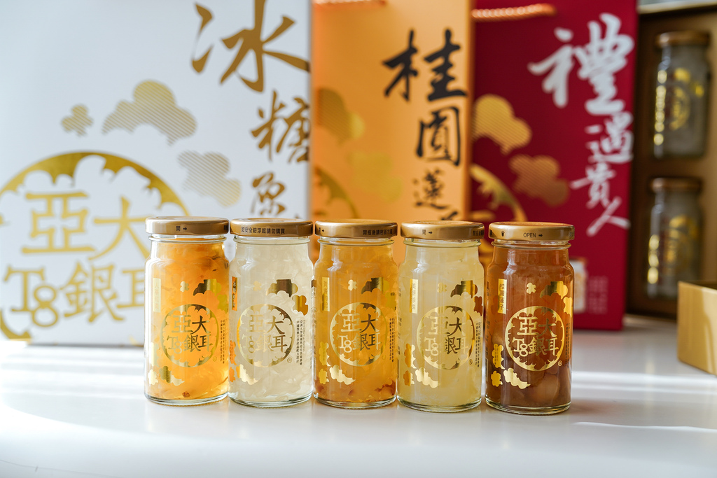 五種口味都很有特色,其中冰糖原味、桂圓蓮子、禮遇貴人等6入禮盒都是亞大T8銀耳平常熱銷排行前幾名,想要找伴手禮的朋友別錯過,雙11的全家福24入箱超級優惠,箱購更划算!